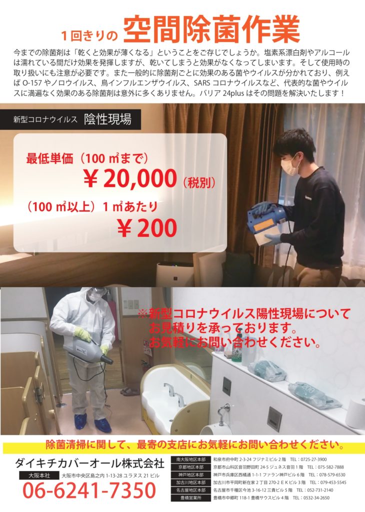 前回ご紹介しました日常清掃+空間除菌のサービスですが、お客様にお見せできるチラシが完成しましたのでこちらでもご紹介致します!