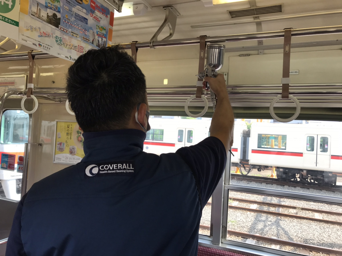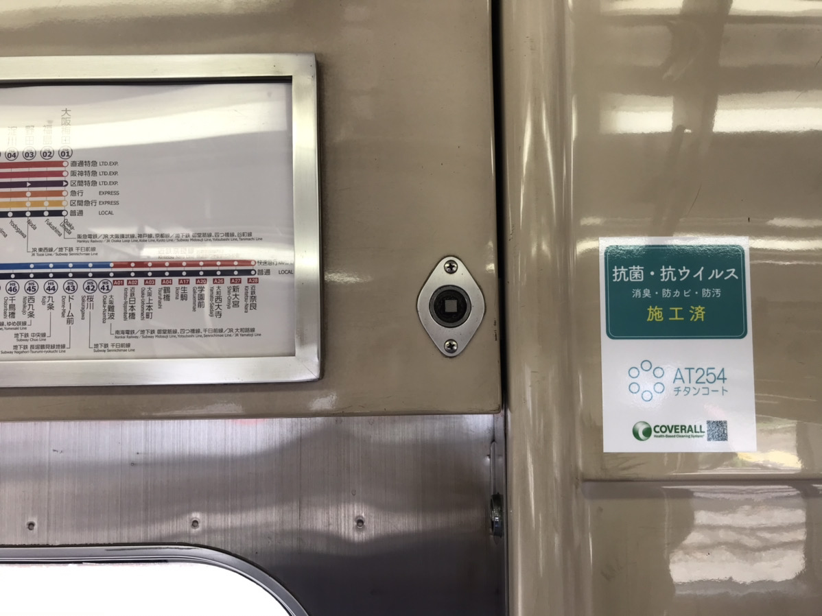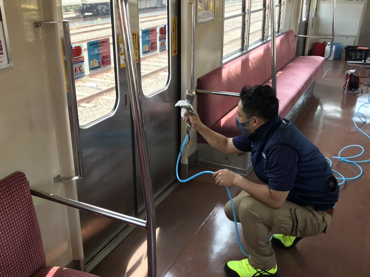 阪神電車様と同様に、吊革、手すり、壁、ガラス、座席など、お客様の手に振れやすい箇所を中心に抗菌・抗ウィルス加工をさせて頂いておりますので、お客様には安心してご利用頂く事ができます。