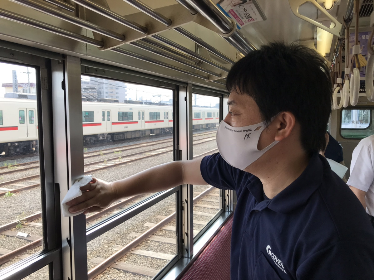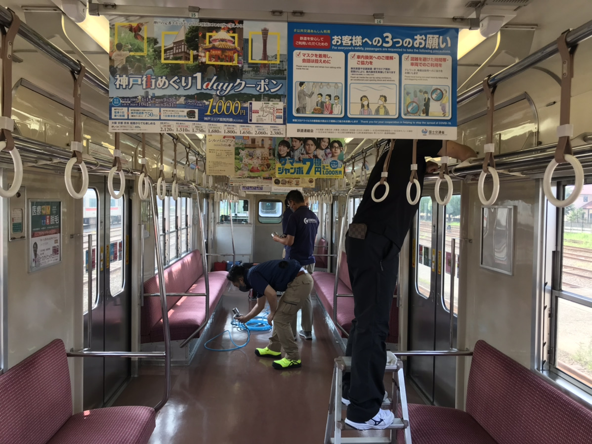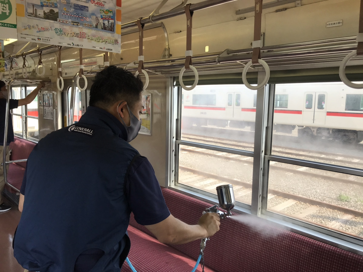 阪神電車様と同様に、吊革、手すり、壁、ガラス、座席など、お客様の手に振れやすい箇所を中心に抗菌・抗ウィルス加工をさせて頂いておりますので、お客様には安心してご利用頂く事ができます。