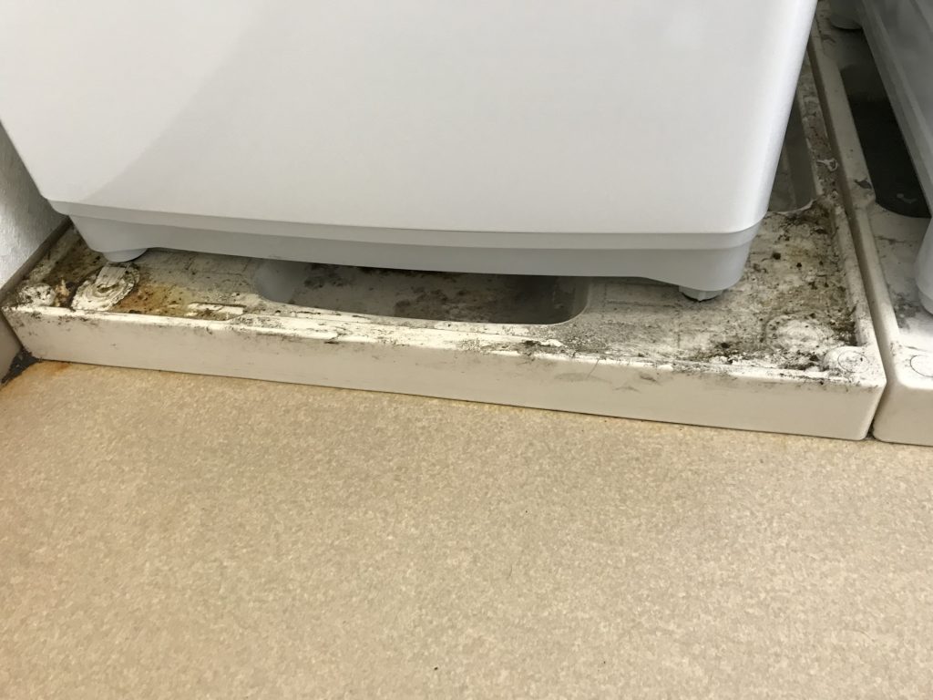洗濯機、乾燥機下の汚れも除去する為、動かせる物は全て室内から運び出し、洗濯パンにはケミカル塗布し時間を置きしつこい汚れを除去しました。