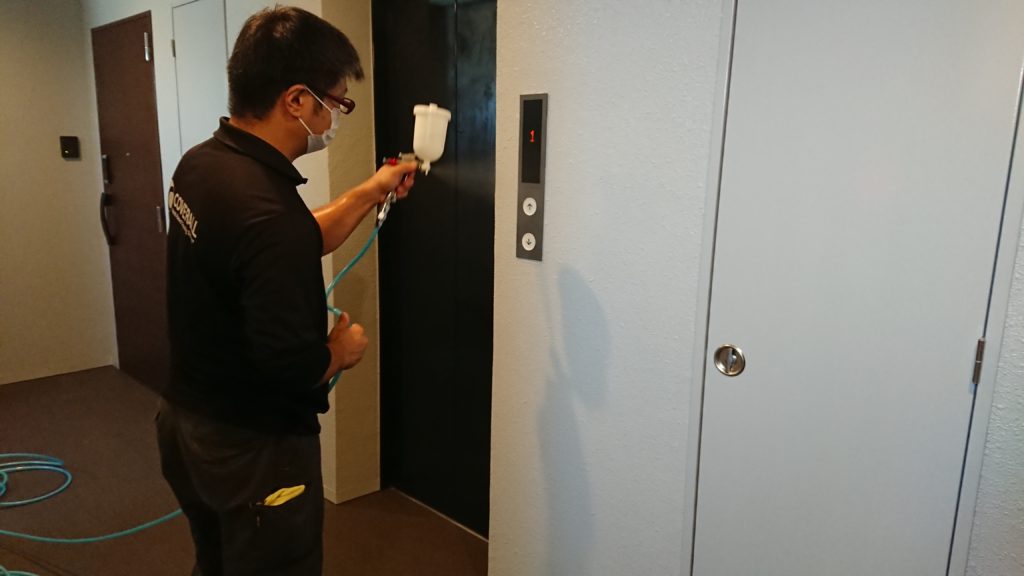 10月2日には、竣工したばかりの新築マンション、コウマスター西九条の共用部分、エレベーター、メールボックス、階段の手すり、各室ドアやその周辺の施工も終え、入居者様を安心してお迎え出来ると喜んでいます。