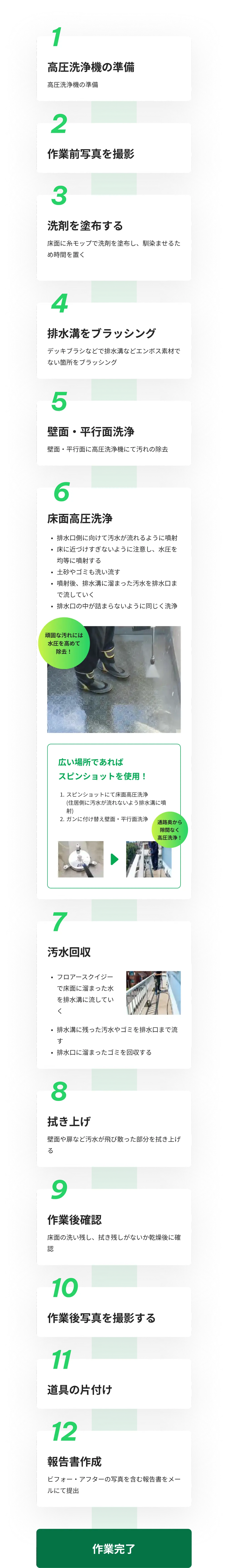 ダイキチカバーオールでは作業前に現地調査を行い、高圧洗浄が難しい場合はポリッシャー洗浄への切り替えなど、トラブルやリスクを発生させない適切なご提案を柔軟にさせて頂きます。